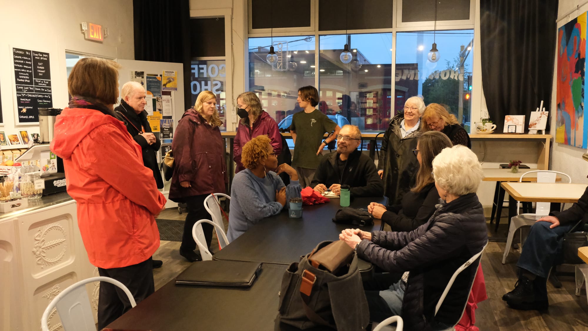 On Tuesday, Oct. 14, a new mural painted on the north side of Showtime Studio & Coffee was officially finished and dedicated. A rainy evening did not stop the enthusiastic gathering of community members to celebrate the mural and the collaboration between Arts Roseville, the Roseville Area Community Foundation, and Showtime Studio & Coffee.