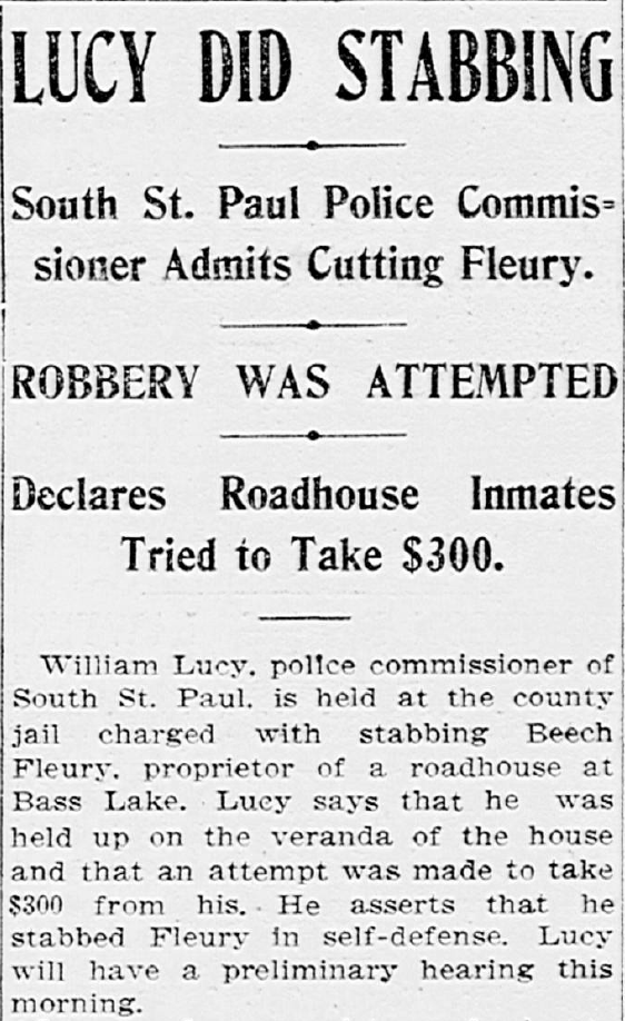 One time in 1909, a resort operator named Beech Fleury was stabbed in the abdomen with a razor after a fight with St. Paul Police Commissioner William Lucy, who had been visiting the roadhouse to meet a woman. Fleury was hospitalized, but survived. He operated his roadhouse alongside Martin McNulty. Records refer to it as the Berlin Club and the Woodland Club. Two places or the same? What we do know is that Martin McNulty was brothers with John McNulty, who got the mechanic’s lien on behalf of Mary Sullivan. And on the 1910 Census, Martin (also known as Mathis or Mat) was a neighbor of Mary Sullivan. So, either they operated neighboring roadhouses or they operated the roadhouse on the land Mary Sullivan owned.