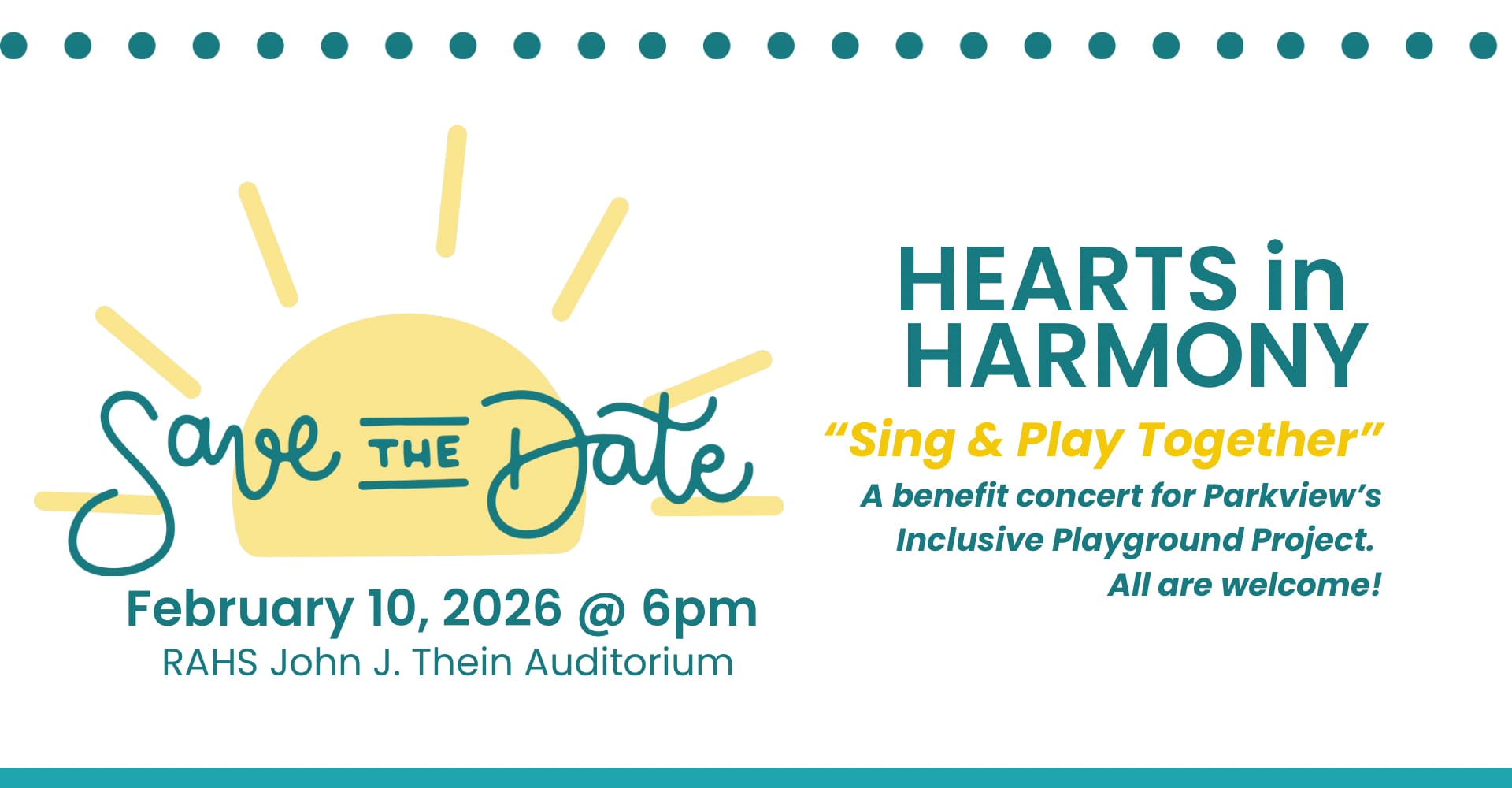 "Parkview’s Hearts in Harmony student choir is thrilled to present a special benefit concert in support of Parkview’s Inclusive Playground Project! This evening of music will bring together Parkview families, friends, and community members to celebrate music, belonging, connection, and inclusive play for all."