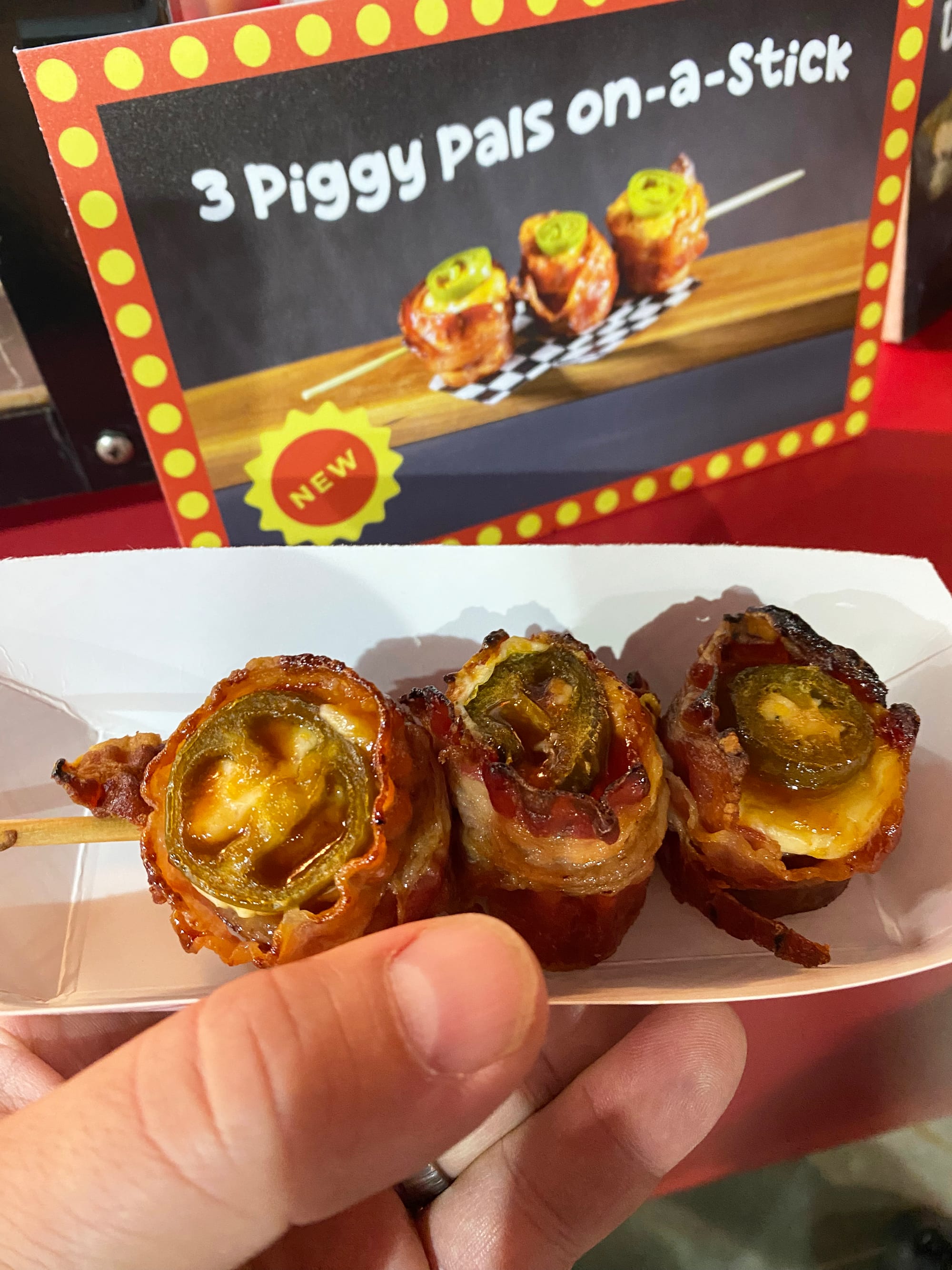 This is one of my favorite food vendors of all time and last year’s new food was fantastic. It’s bacon, sausage, and jalapeño, and it’s on a stick!