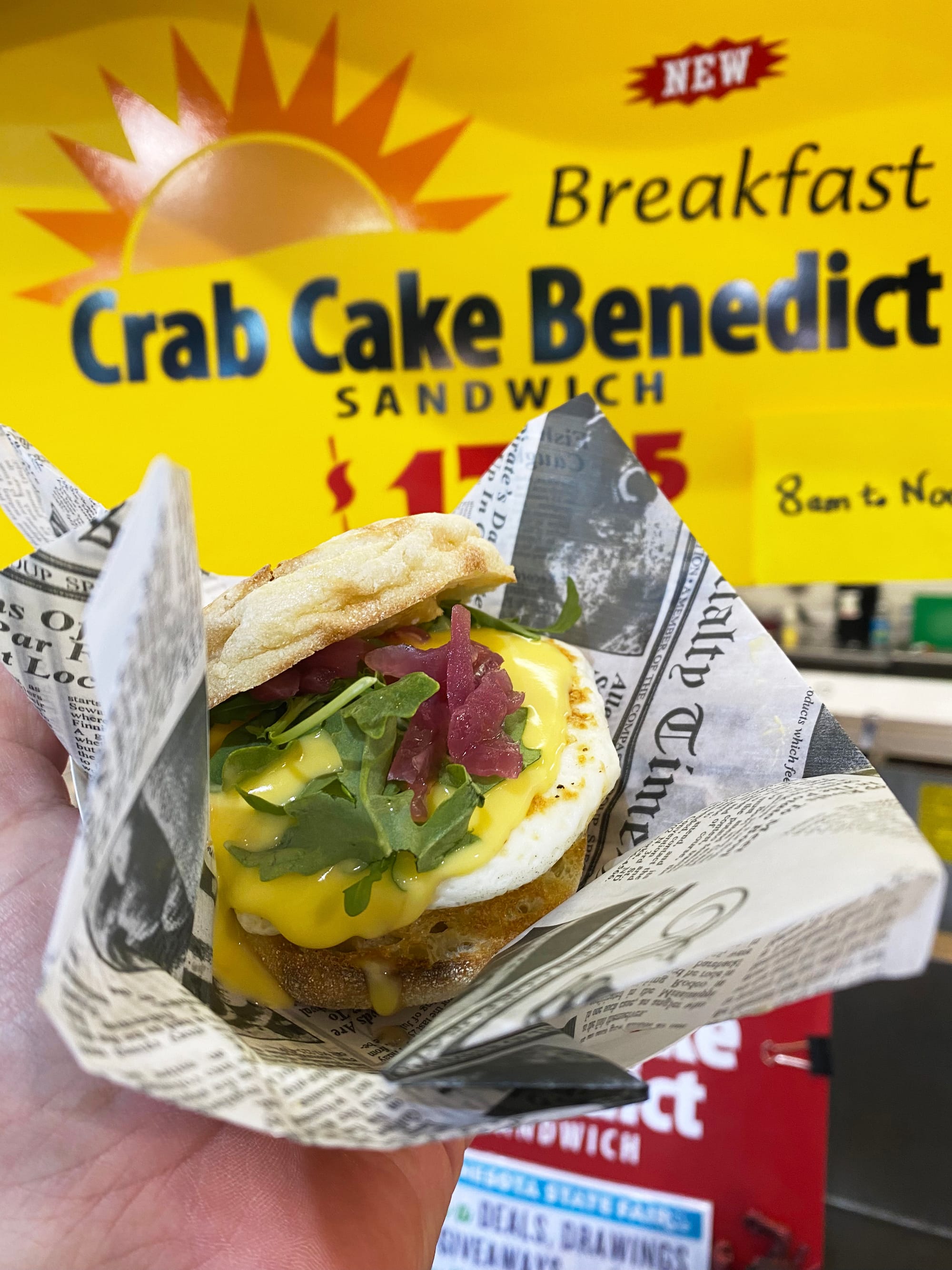 Crab Cake Benedict Breakfast Sandwich - Fish and Chips Seafood Shoppe