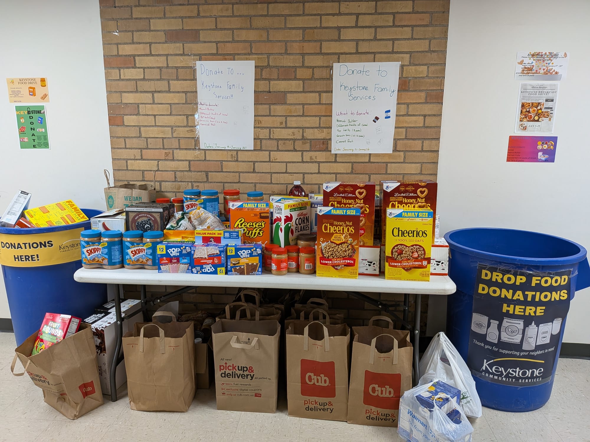 Keystone Community Services, which serves youth, seniors and food shelf services in St. Paul and Ramsey County, helped with a food drive organized by fifth- and sixth-grade student leaders who collected breakfast items.