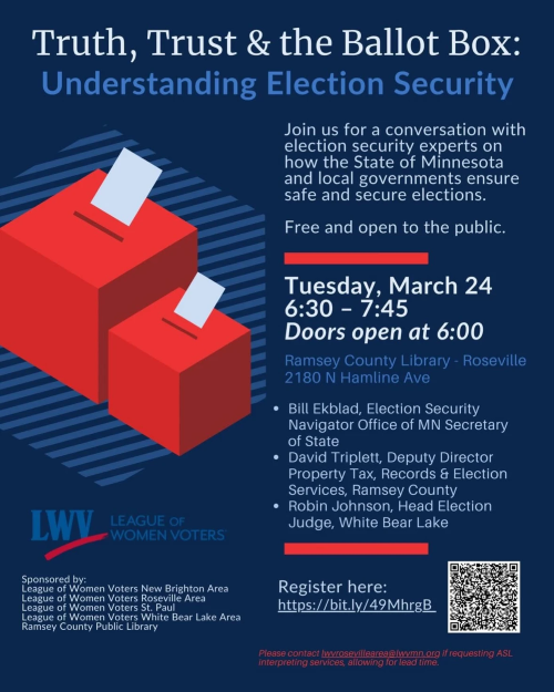 "Join us for a conversation with election security experts on how the State of Minnesota and local governments ensure safe and secure elections.