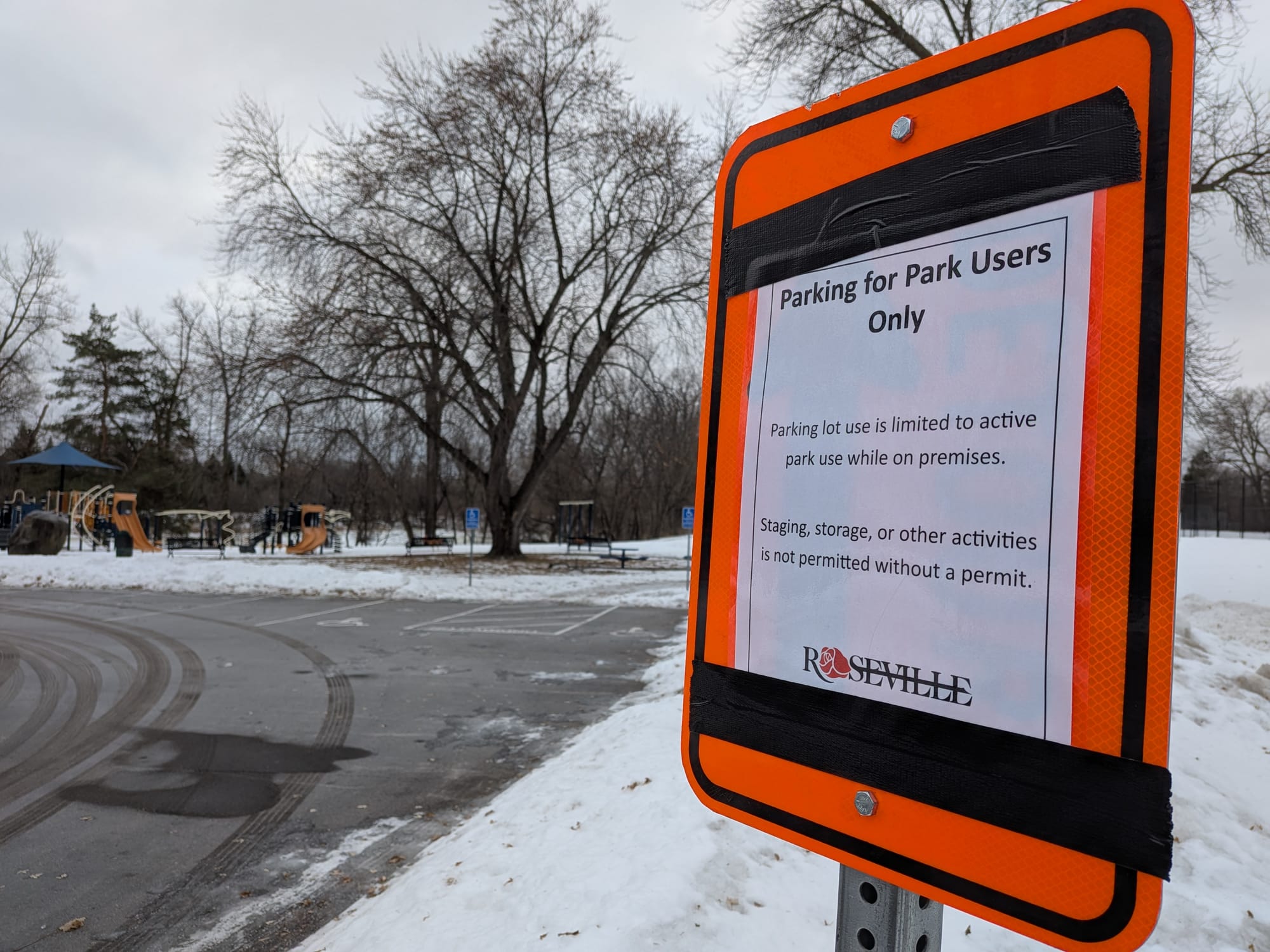 On Jan. 15 city staff placed signs in Roseville Parks restricting the use of parking lots to active park users. They are also temporarily closing park bathrooms when not in use for a specific event.