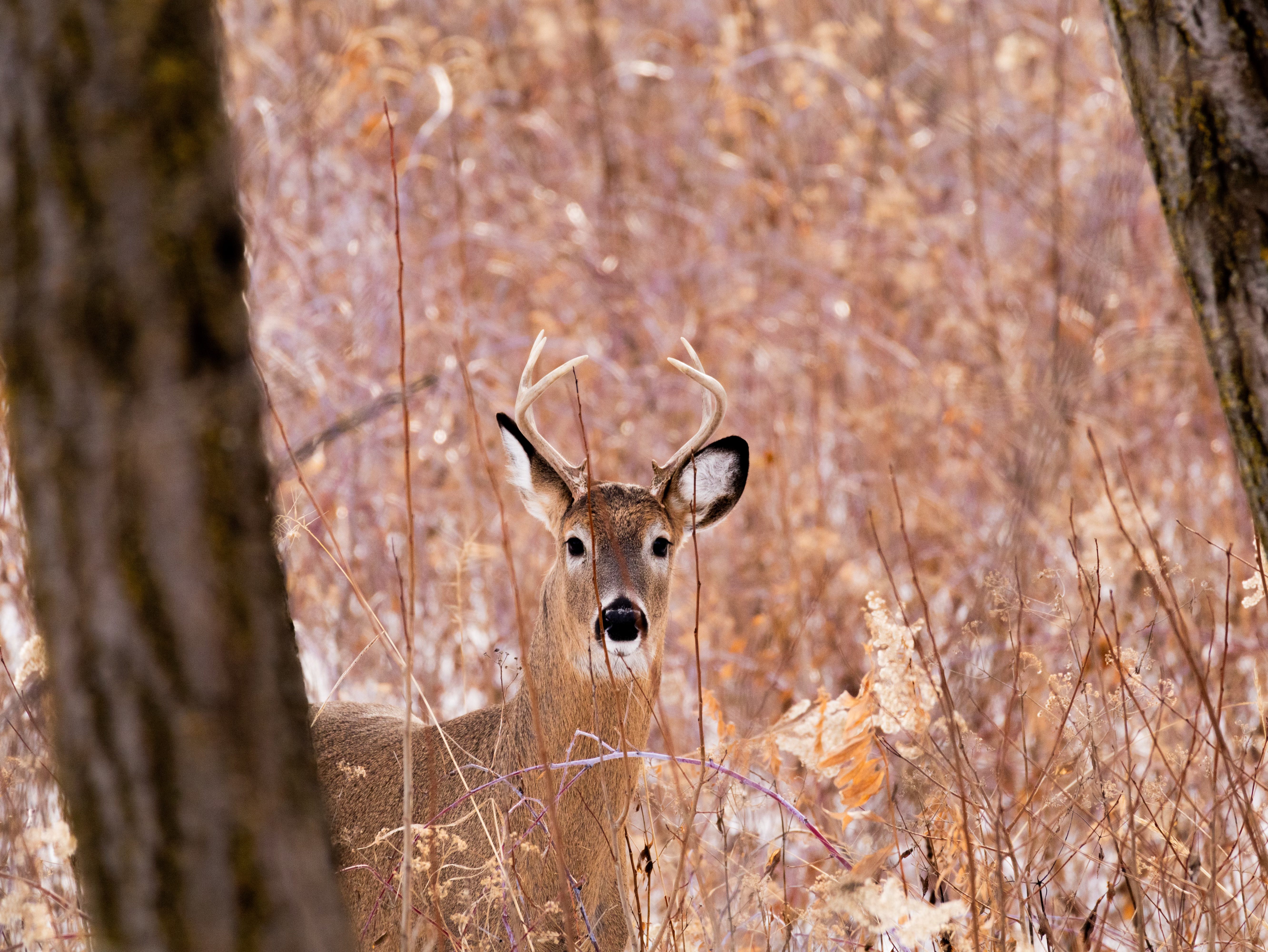 “Many of the deer in the Reservoir Woods are super used to people walking by, so you can get quite close! This instance I saw two young bucks, curious about me and my camera. They didn’t seem to mind my company, so I was able to observe them for close to an hour,” Angellar told the Roseville Reader.