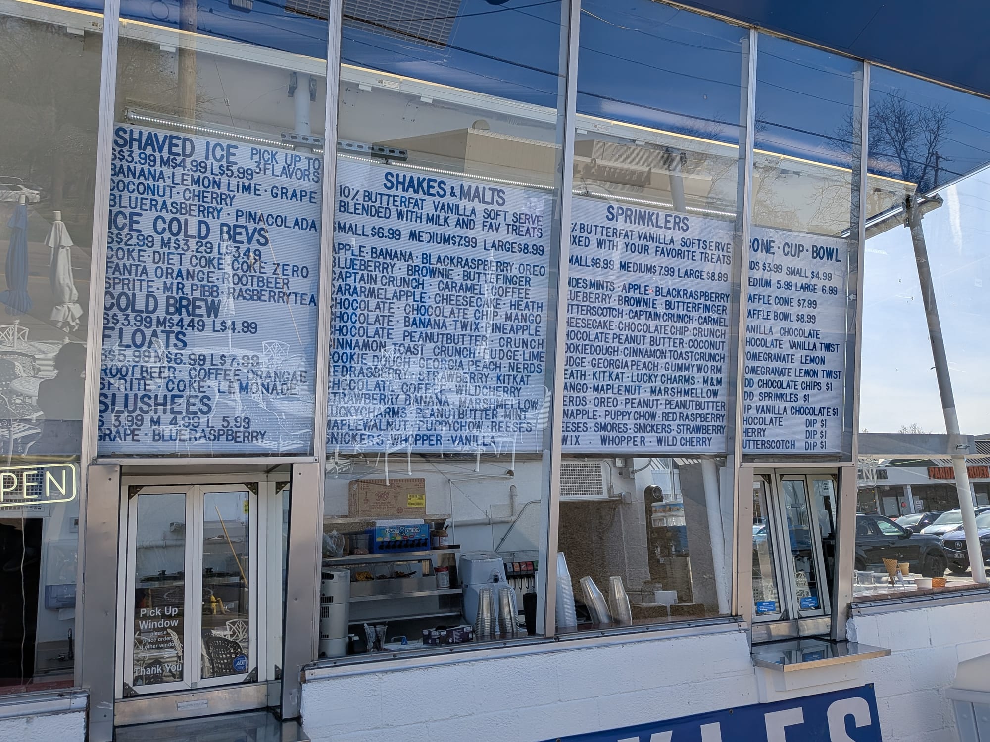 The independent ice cream shop, which opened in June 2025 in the former Lexington Plaza DQ building, is back with new menu placards in the front windows. These replace the digital screens and paper menus from last year.